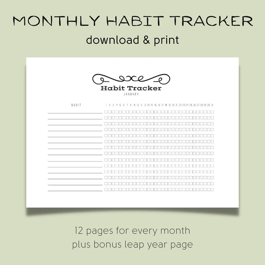 Minimalist habit tracker printable monthly perpetual calendar 13 pages