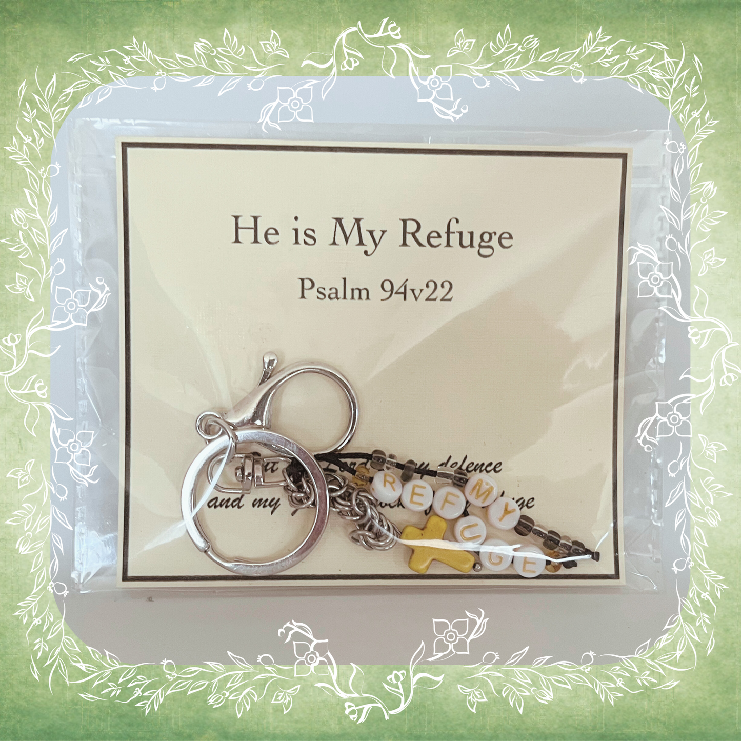 The My Refuge keyring is a bold blend of beauty and strength—just like the verse behind it. Crafted with a mix of stainless steel rings and colourful beads, this piece is designed to remind you that no matter the storm, your foundation is secure.