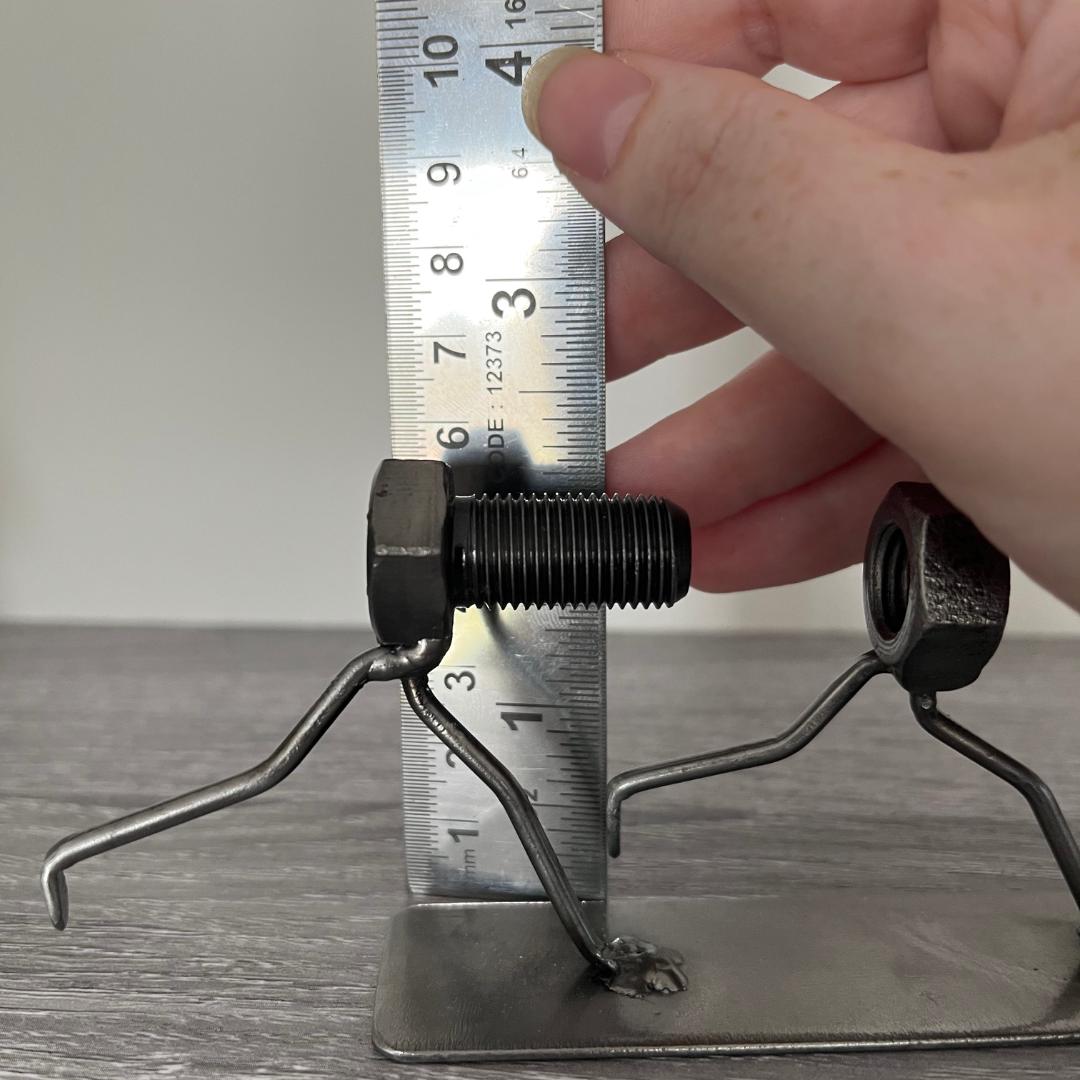 Some love stories are timeless. Others are made of hardware. This whimsical sculpture of a bolt hot on the trail of a nut is a hilarious nod to the never-ending pursuit of connection. Perfect for tinkerers, engineers, or anyone who appreciates a good pun in metal form.